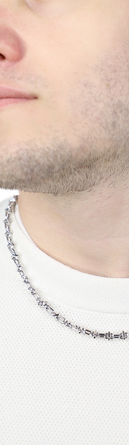 Chaîne homme en or blanc 18k avec design fantaisie