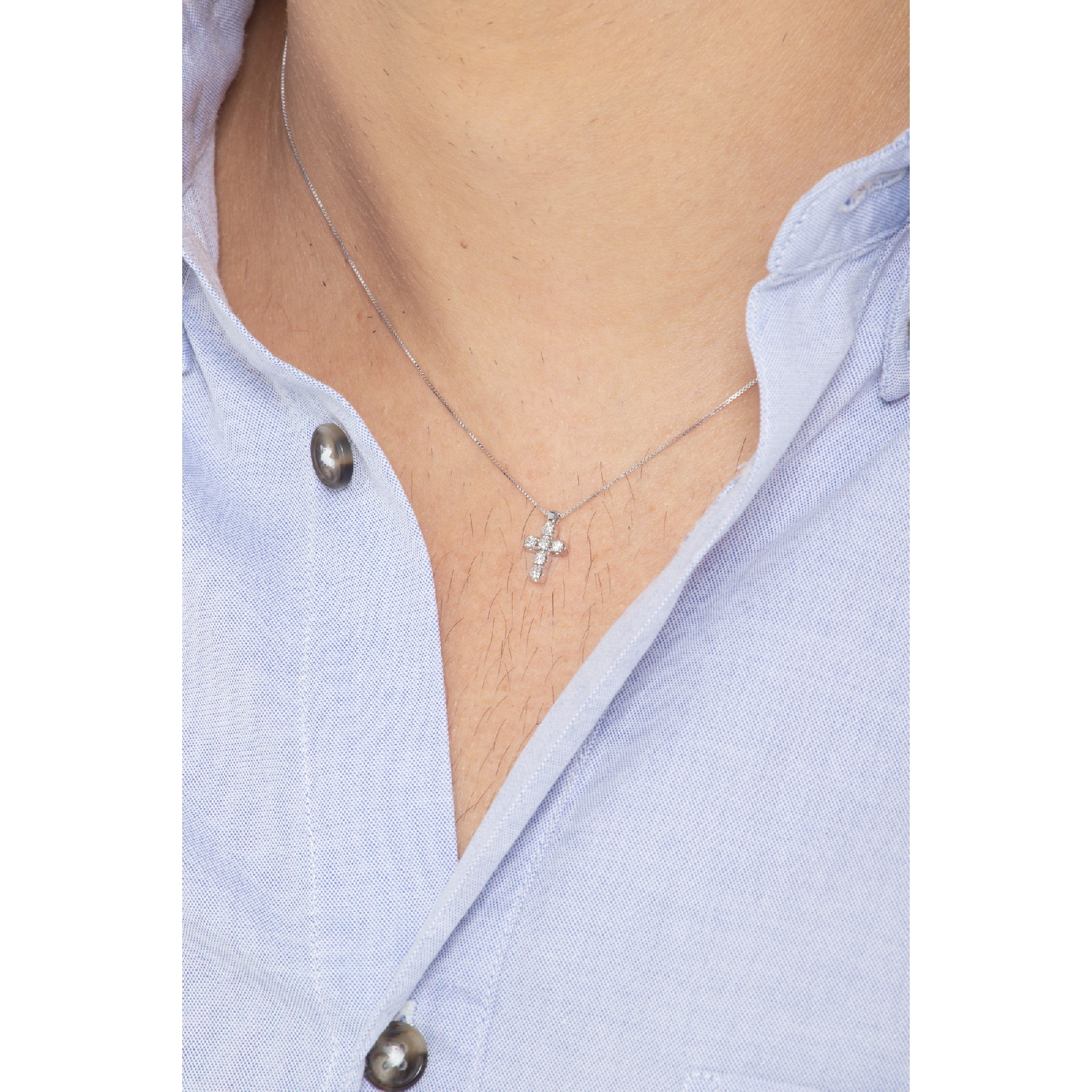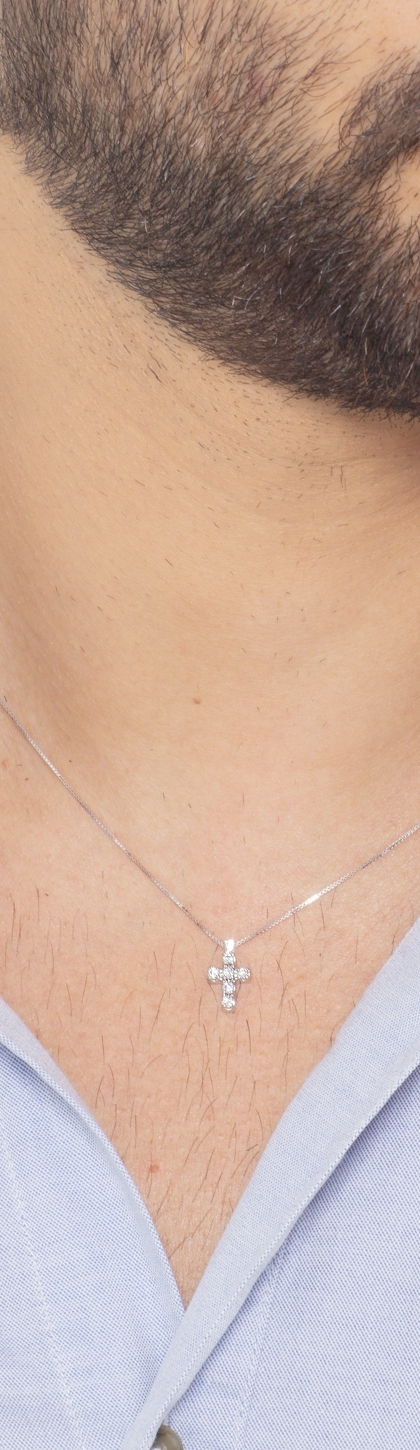 Collier avec pendentif croix Or Blanc 18k et diamants
