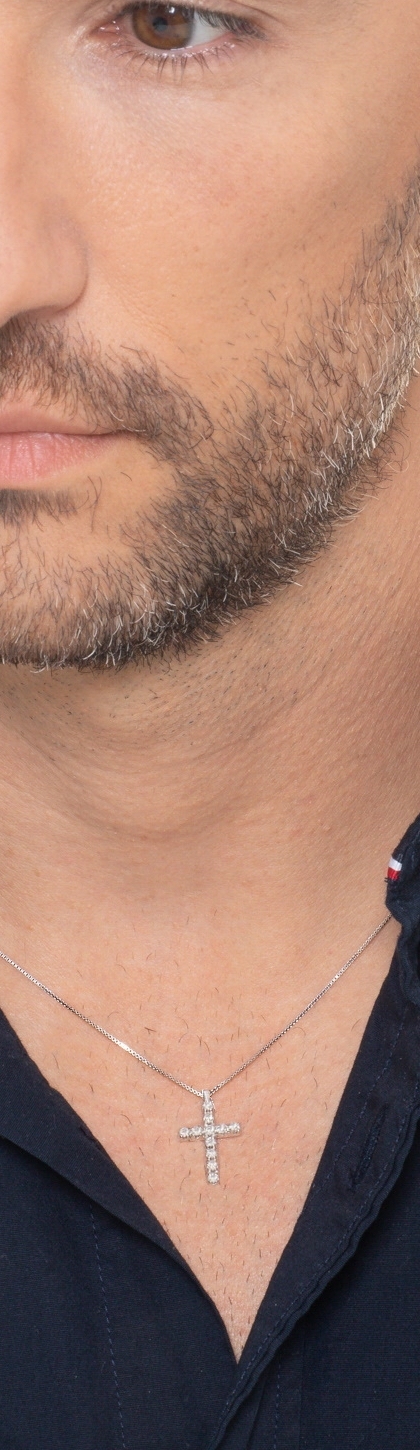 Collier homme 50cm avec pendentif croix en or blanc et diamants