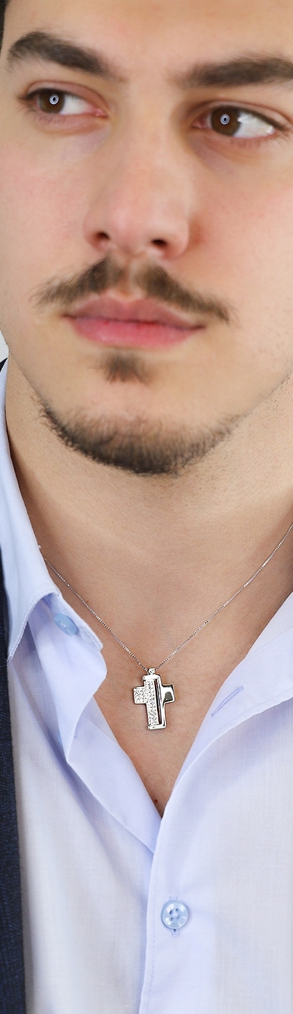 Collier homme en or blanc pendentif à croix avec diamants or blanc 18k
