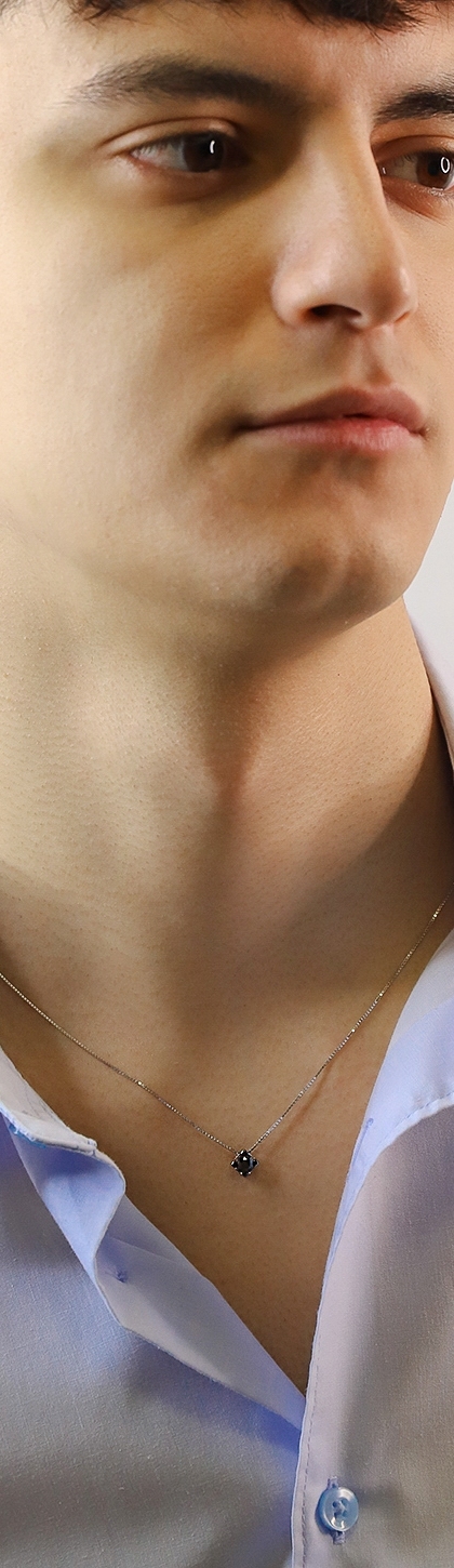 Collier homme en or blanc 18k avec un diamant noir CM50