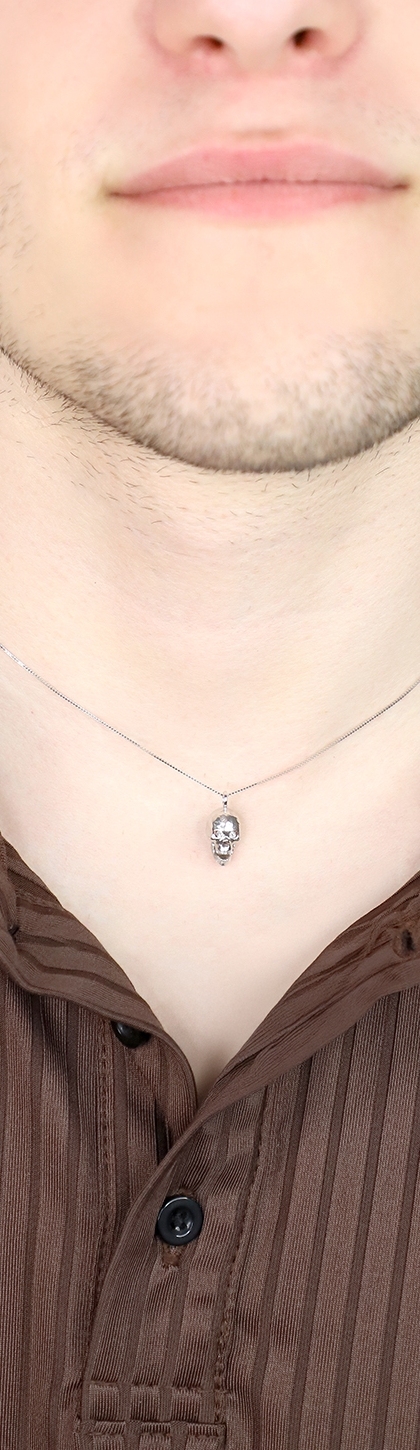 Collier homme en or blanc 18k avec un diamant noir CM50