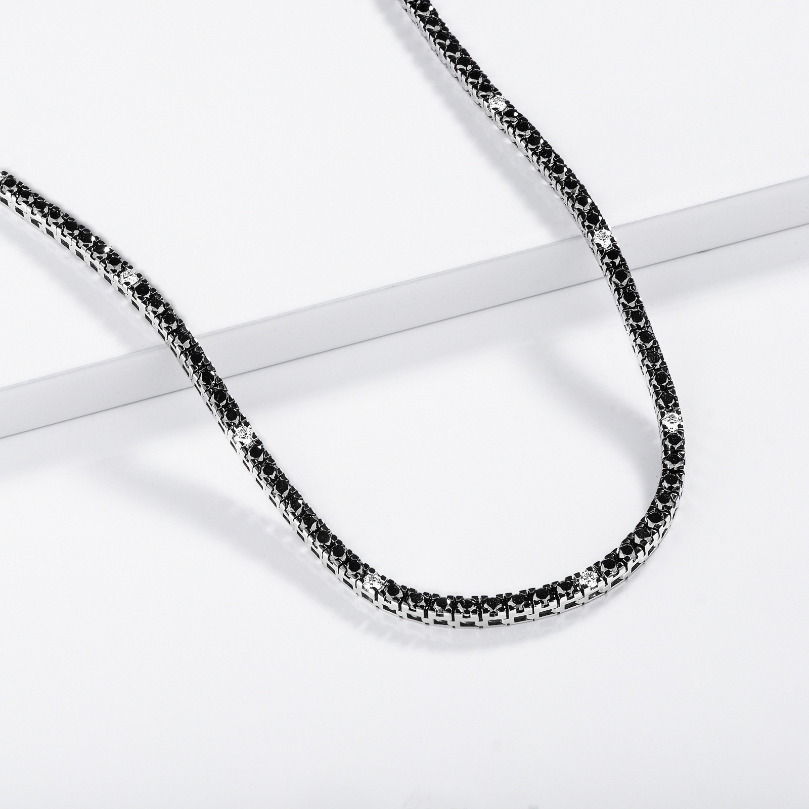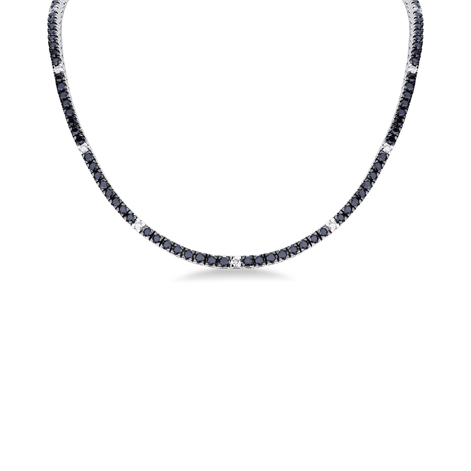 Ce collier tennis en diamants noirs se distingue par la présence délicate de diamants blancs qui viennent adoucir l’intensité de la couleur sombre, ajoutant de subtils points de lumière. Réalisé en or 18 carats, ce bijou ne passe pas inaperçu. Les diamants noirs sont parfaits pour celles et ceux qui souhaitent se démarquer tout en conservant l’élégance et le raffinement d’un collier d’exception. Les diamants sont sertis sur des griffes brunies, mettant en valeur la profondeur de leur teinte et leur charme intense. Enfin, ce collier en diamants se marie à merveille avec des colliers pendentifs pour un style contemporain et sophistiqué.