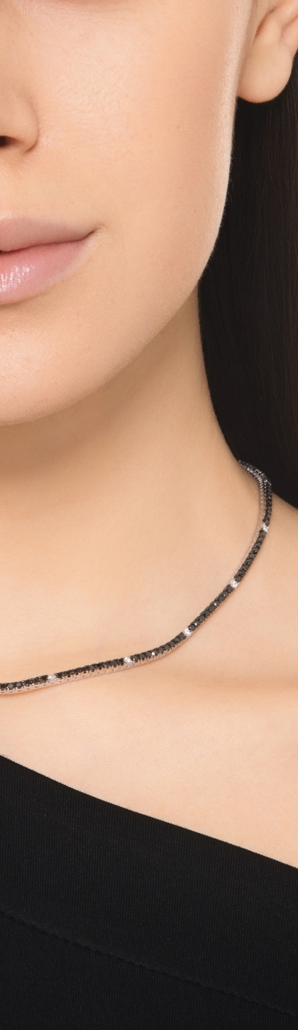 Collier tennis en or 18 carats avec diamants noirs et blancs