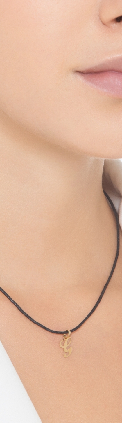 Pendentif avec lettre initiale G en italique en or jaune 18k.