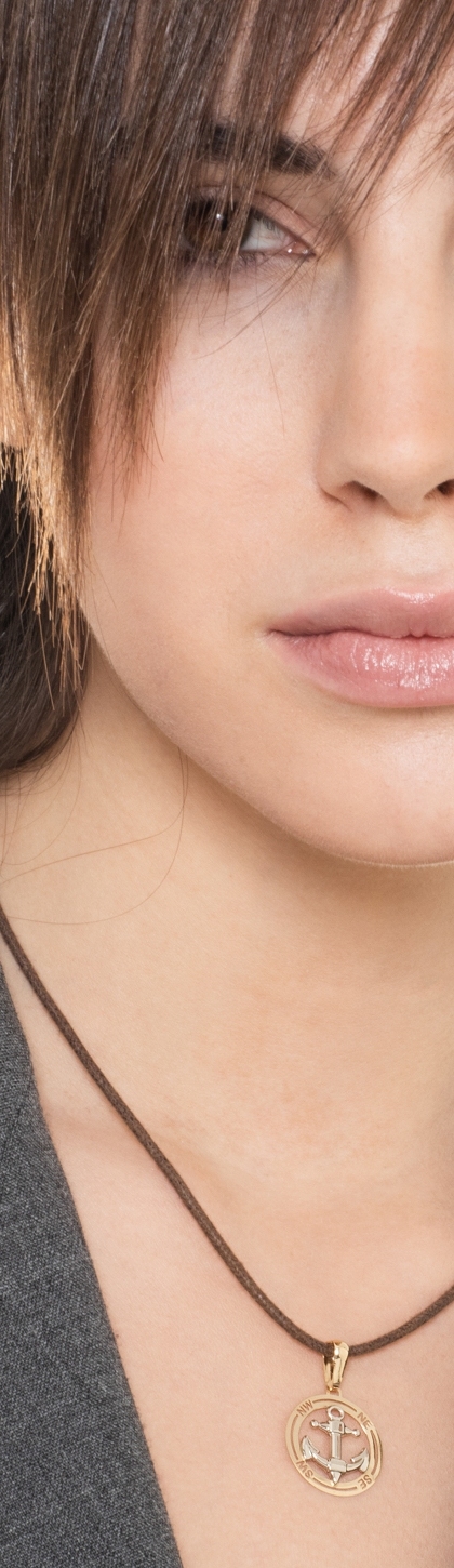 Pendentif or blanc et jaune 18k Rose des Vents et ancre