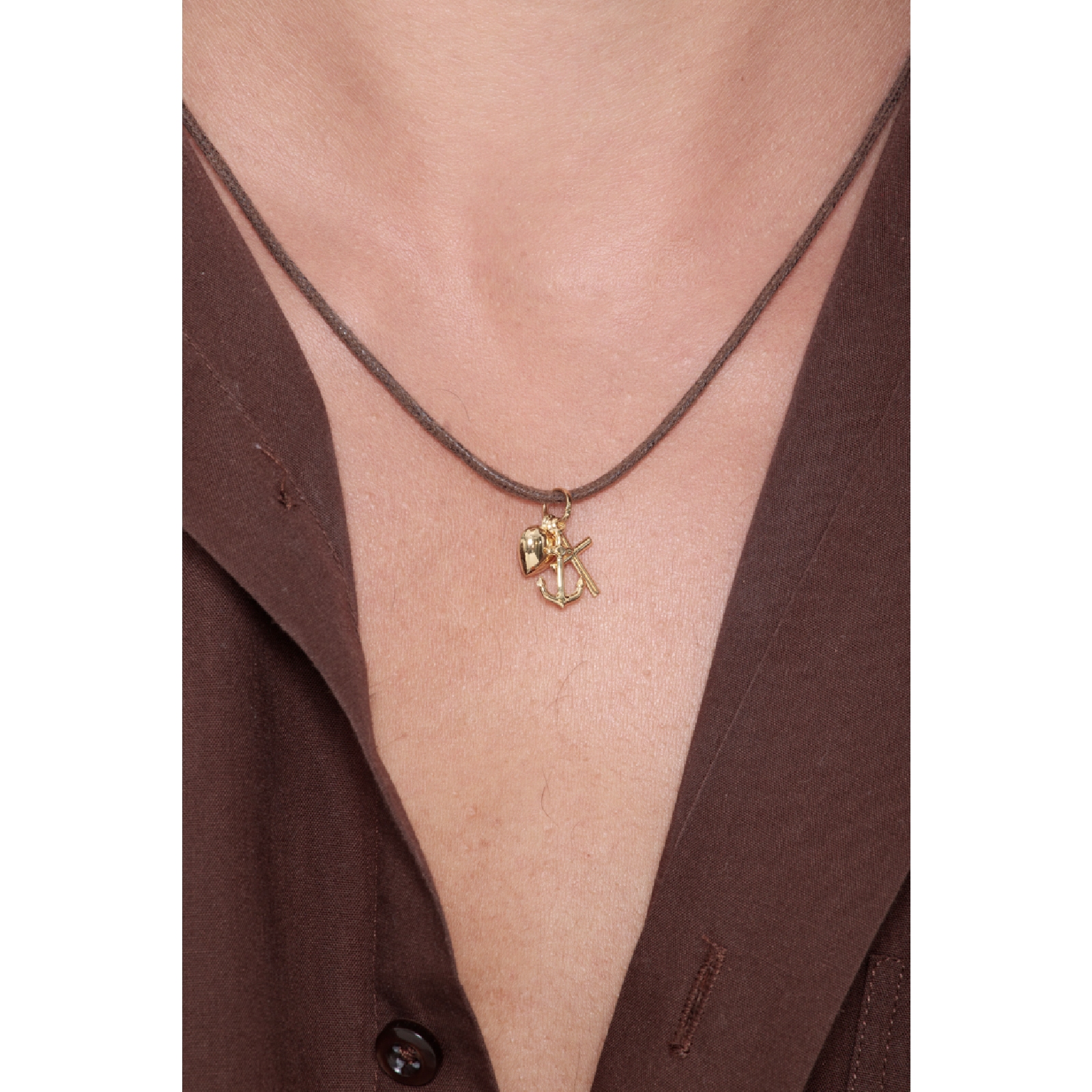 Pendentif Or Jaune 18k avec croix, cœur et ancre