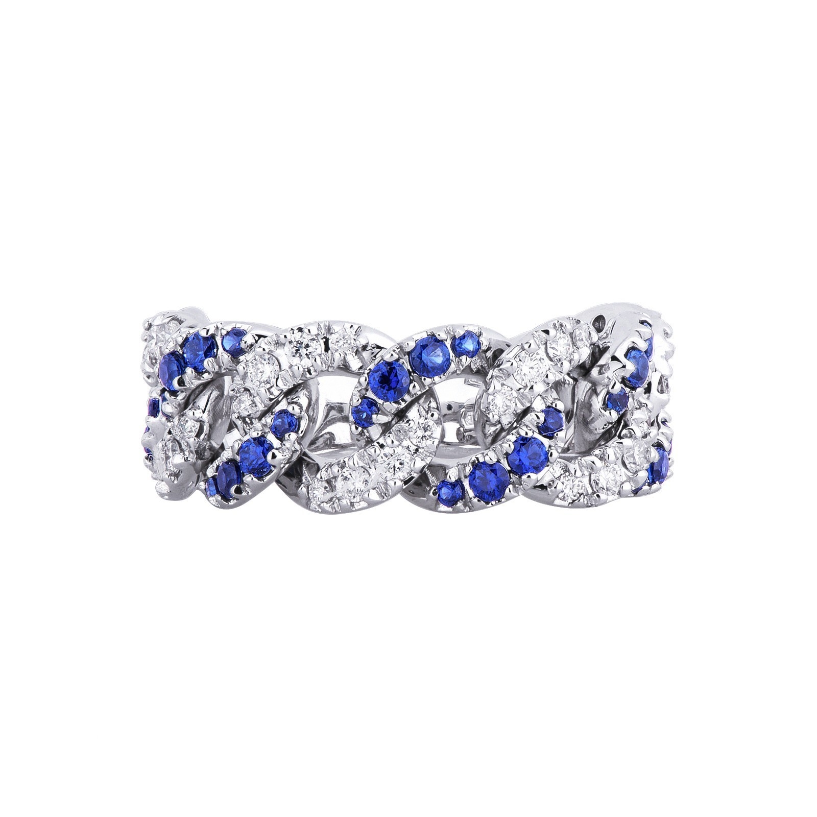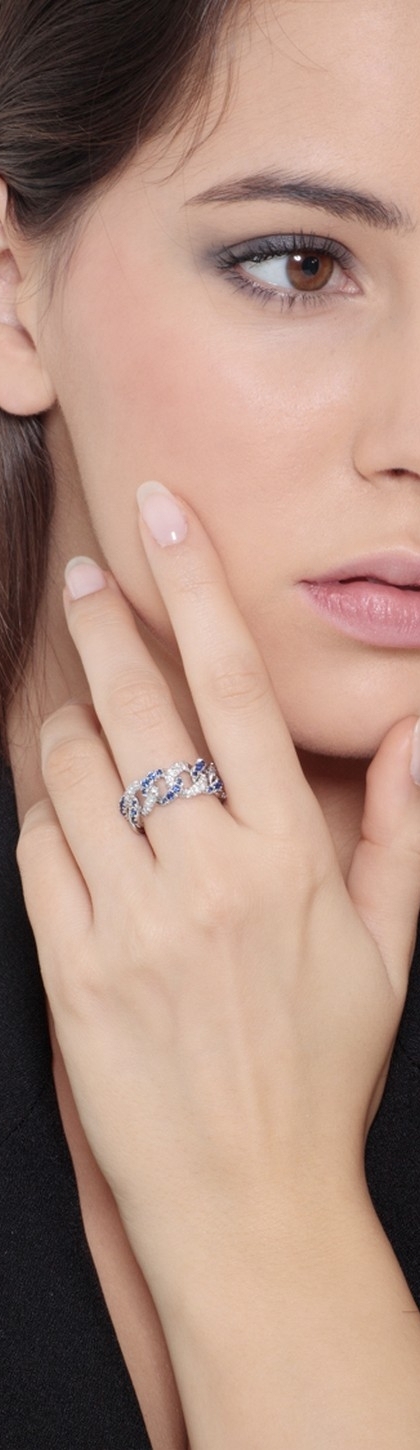 Bague gourmette flexible en or blanc 18k avec saphirs et diamants