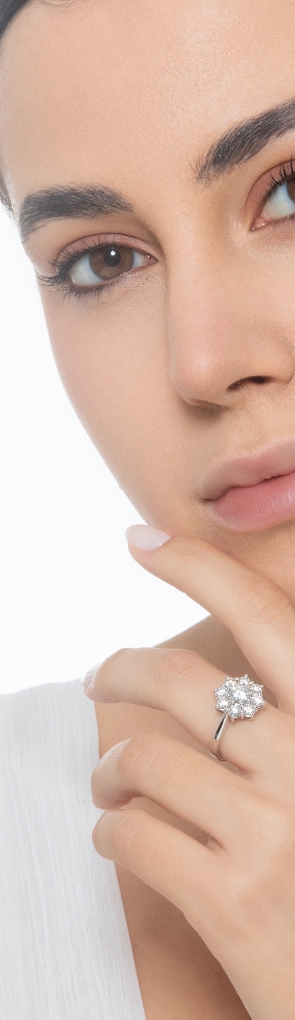 Bague à fleur halo avec diamant central CT0.70 or 18k