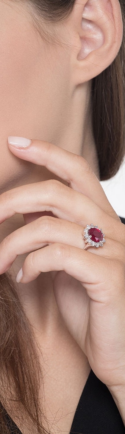 Bague classique en or blanc 18k avec rubis ovale et diamants