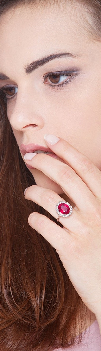Bague de fiançailles rubis taille ovale et diamants