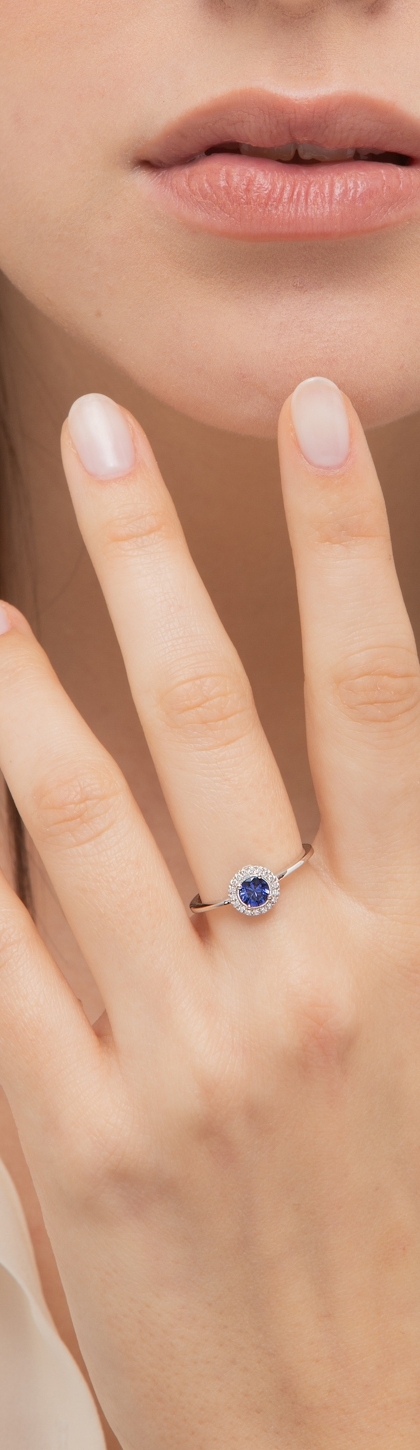 Bague en or blanc 18 carats avec un saphir bleu