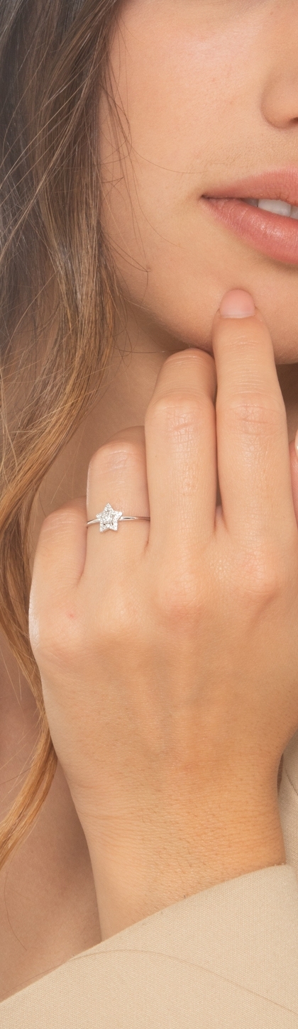 Bague en or blanc 18 carats en forme d'étoile et diamants