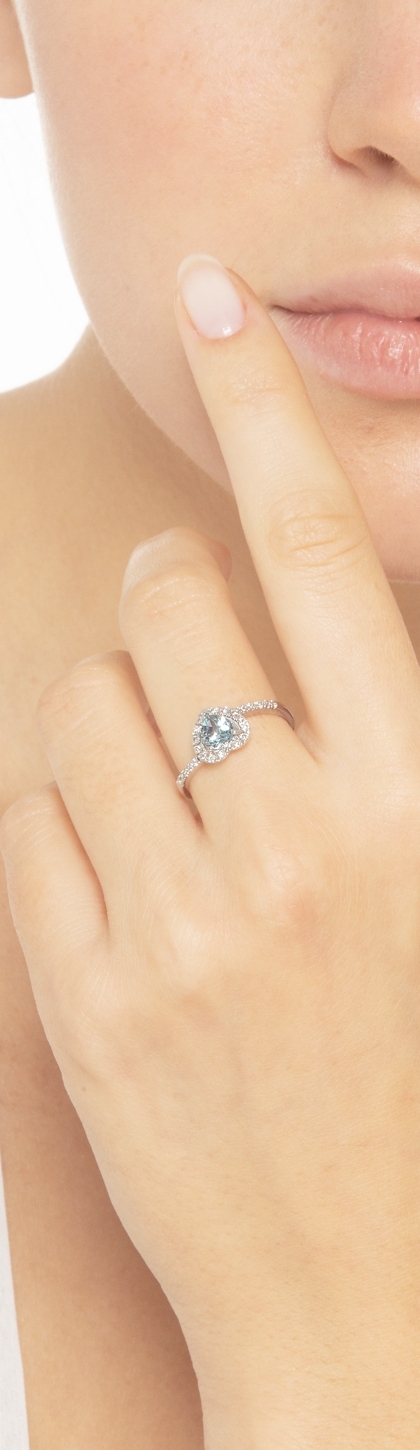 Bague en or blanc 18k avec aigue-marine en forme de cœur