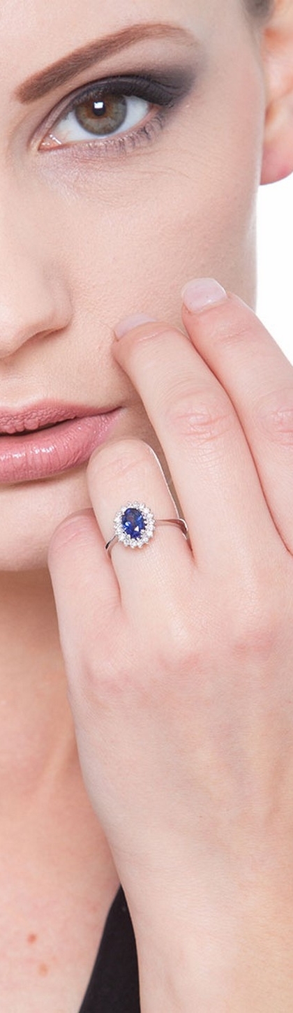 Bague en or blanc 18k avec diamants et saphir bleu ovale