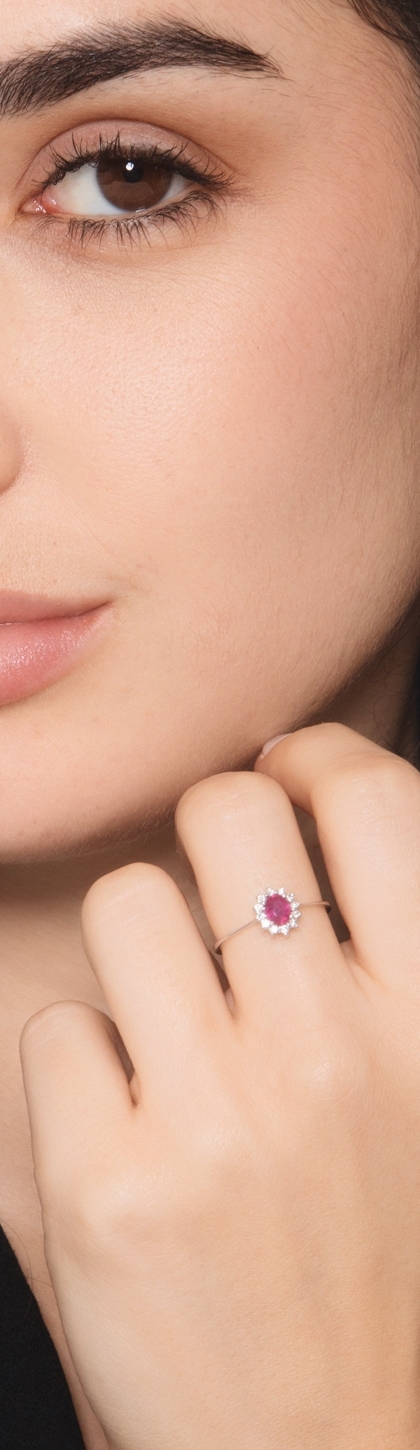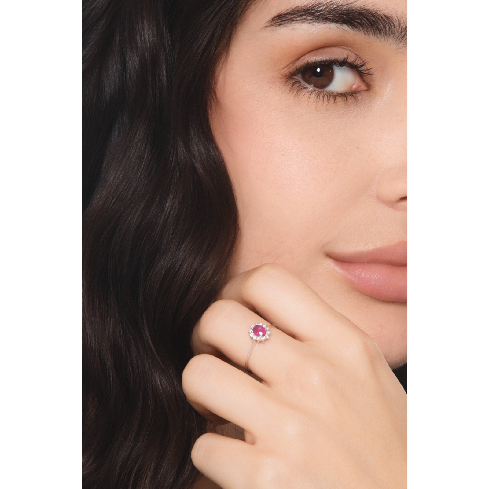 Bague en or blanc 18k avec rubis 5x4 mm et diamants