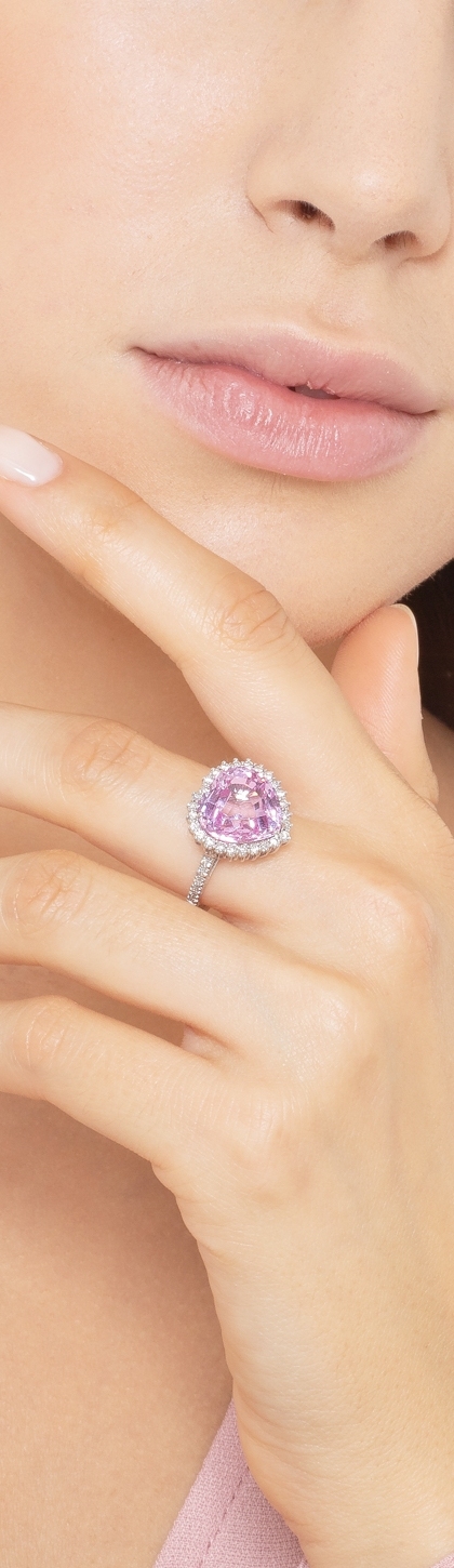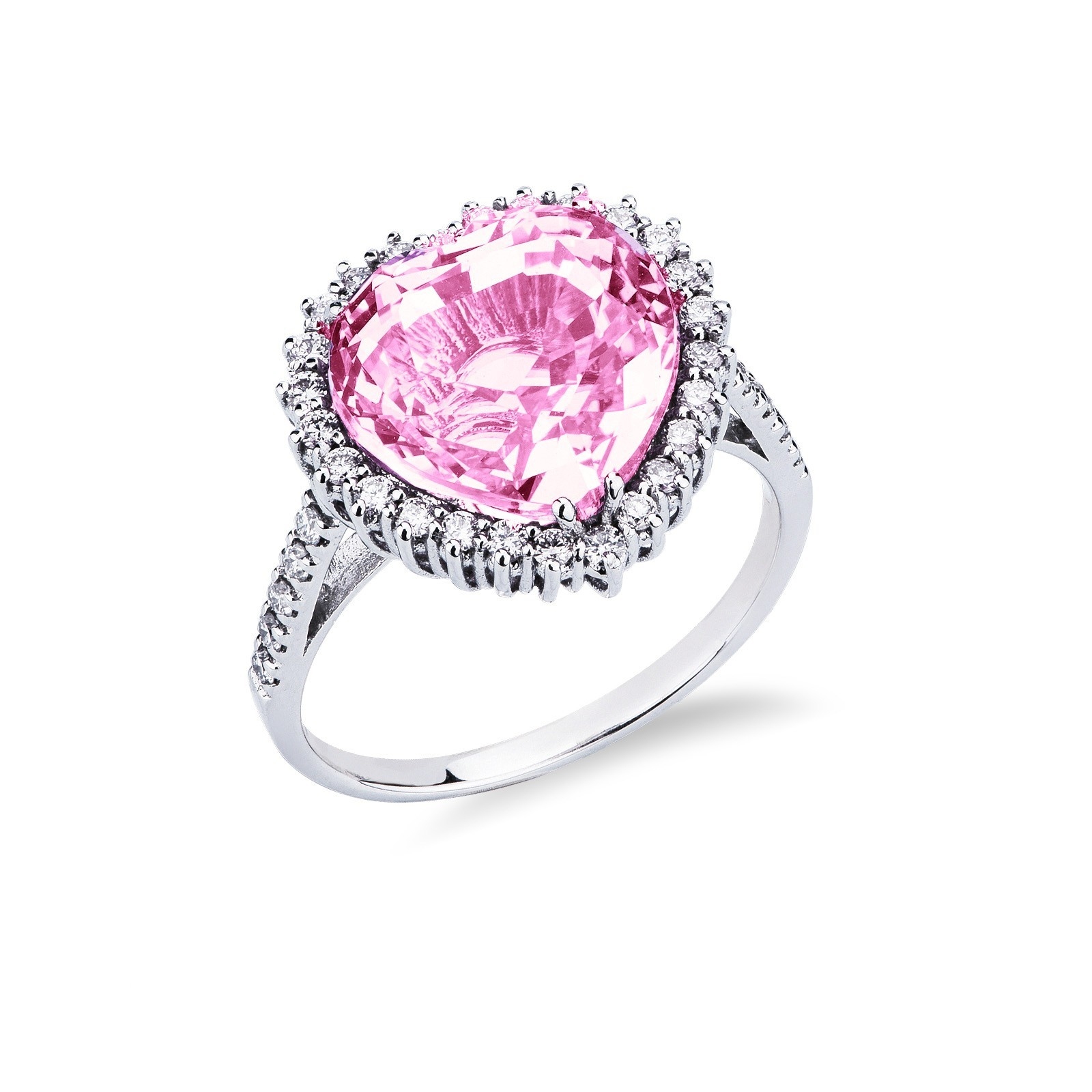 Bague en Or Blanc 18K avec Saphir Rose Cœur et Diamants