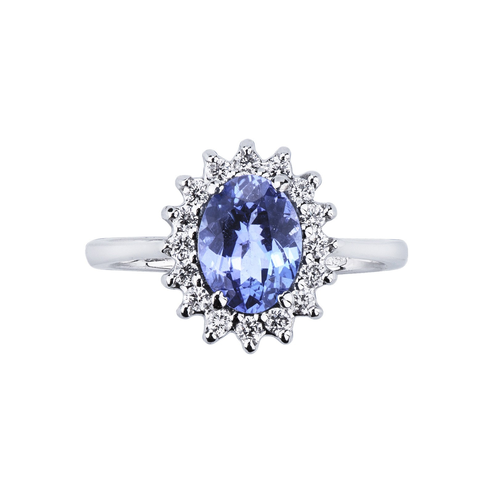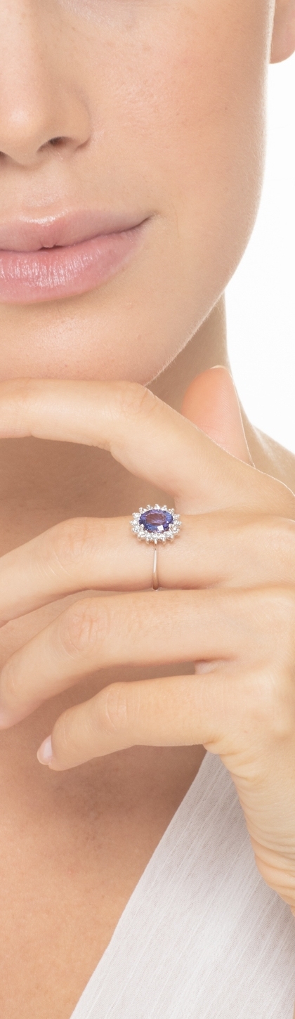 Bague en or blanc 18k avec tanzanite ovale et diamants brillants