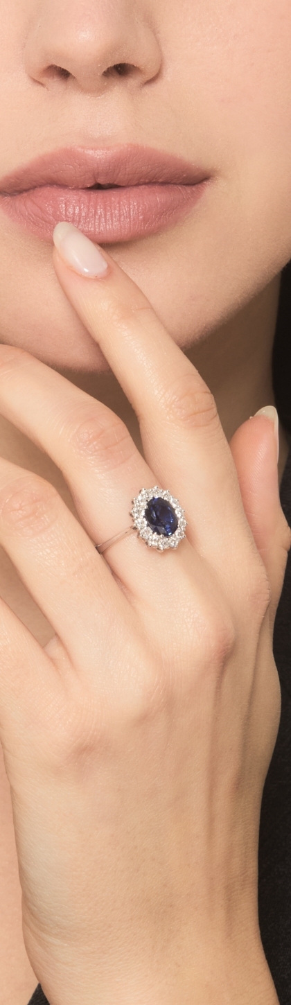 Bague en or blanc 18k avec un saphir bleu ovale MM9X7