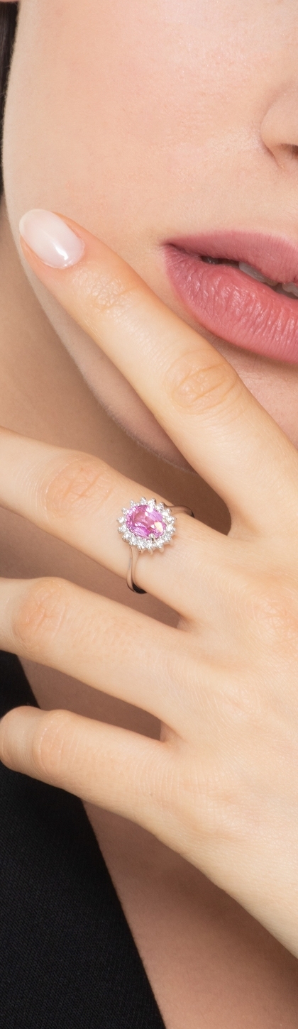 Bague femme en or blanc 18k avec saphir rose et diamants