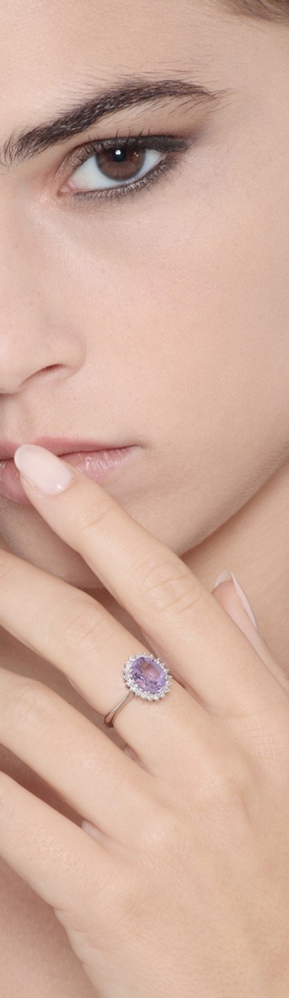Bague halo classique en or blanc 18k avec améthyste et diamants
