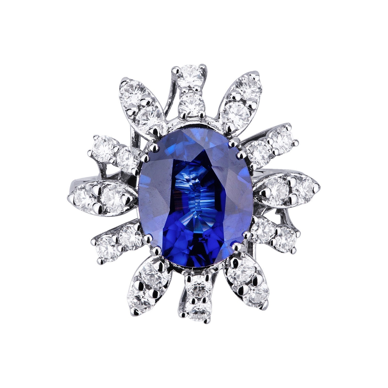 Bague halo diamants en or blanc 18k avec saphir