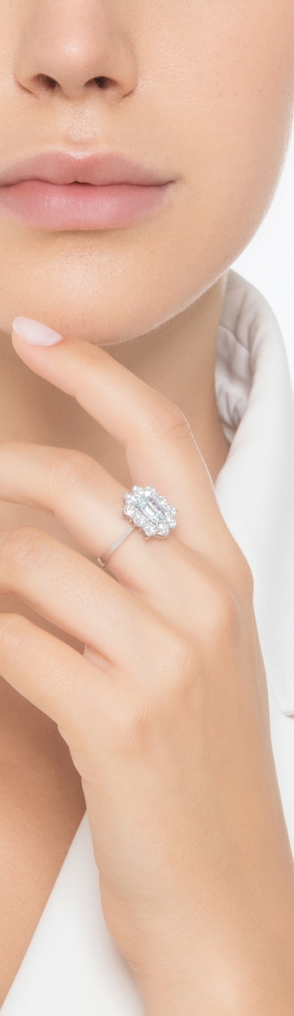 Bague halo en or blanc 18 carats avec aquamarine et diamants