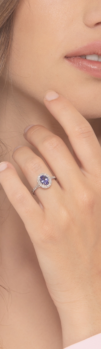Bague halo en or blanc 18 carats avec une tanzanite