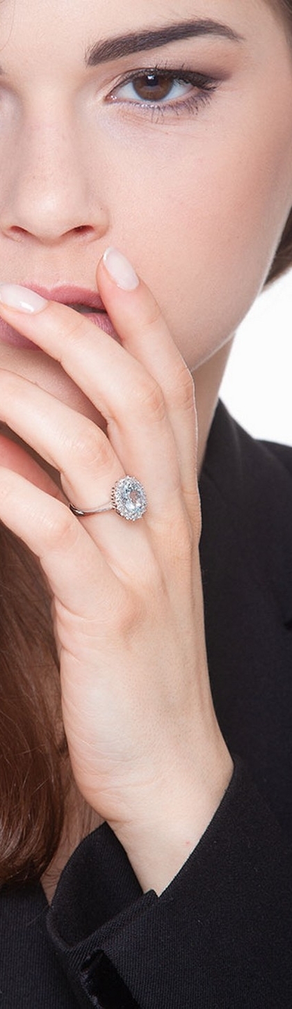 Bague halo en or blanc 18k avec aigue-marine de taille ovale