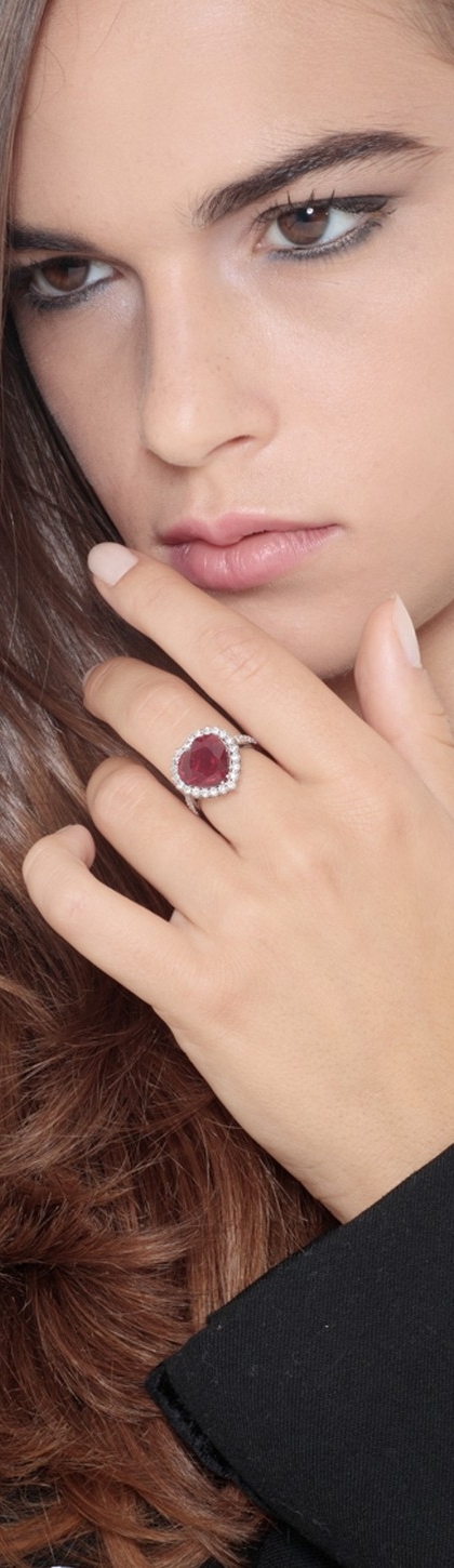 Bague halo en or blanc 18k avec rubis cœur et diamants