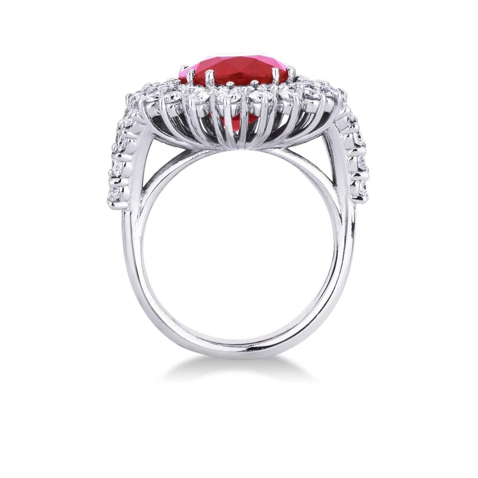 Bague halo en or blanc 18k avec rubis ovale 14X12 et diamants