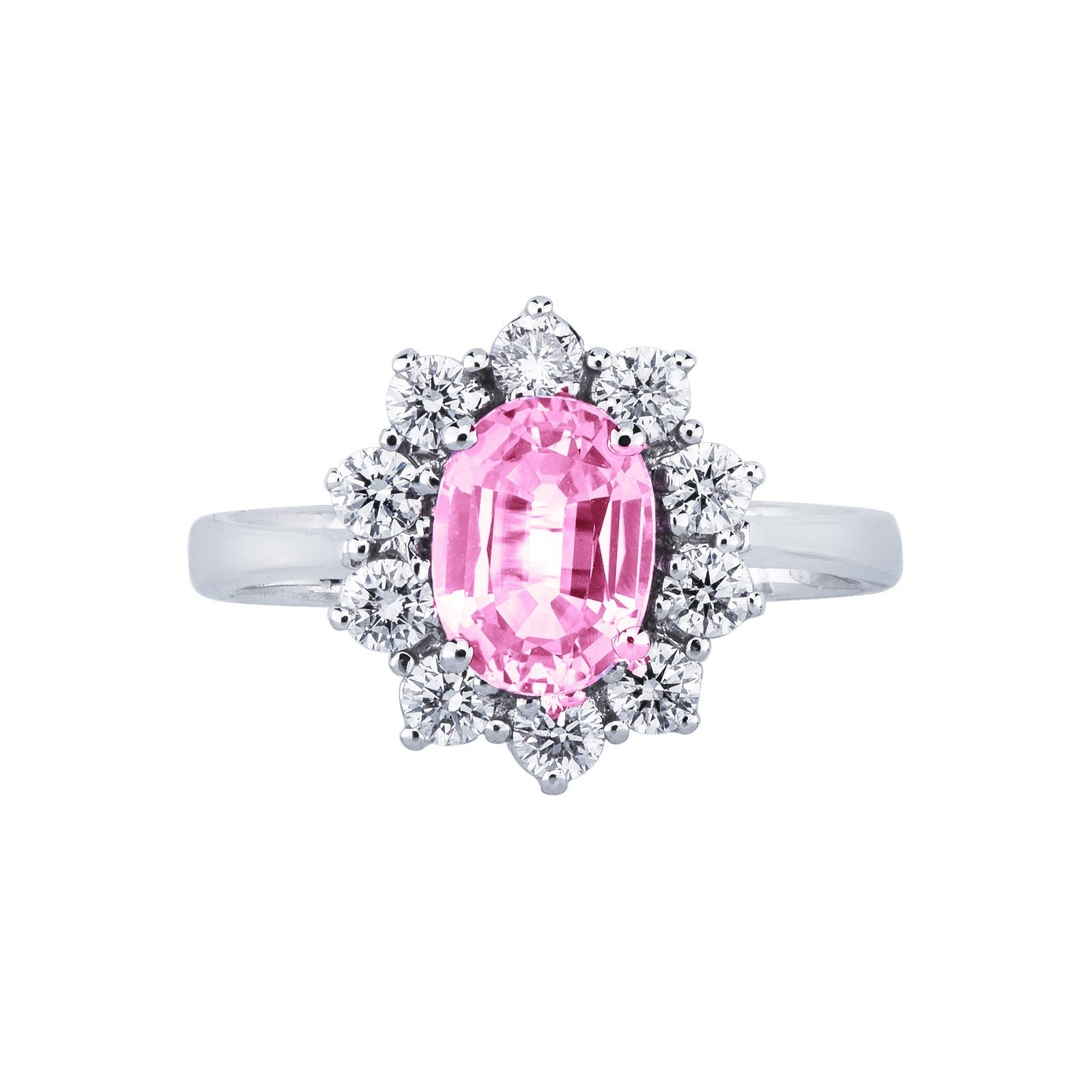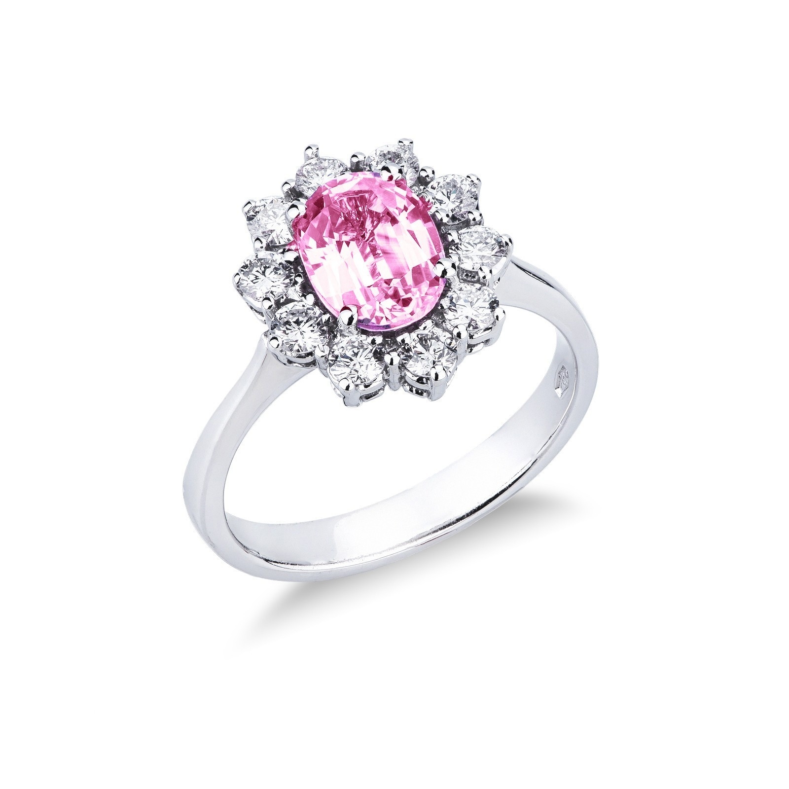 Bague Lady D en or blanc 18k avec saphir rose et diamants