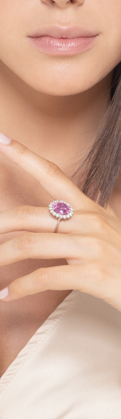 Bague Lady Diana en or blanc 18k avec saphir rose et diamants