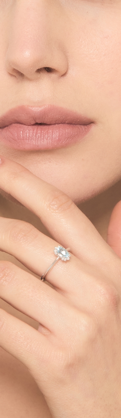 Bague en or blanc 750 avec une aigue-marine et diamant