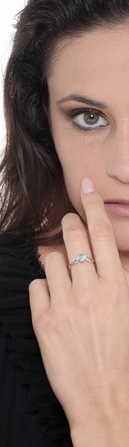 Bague en or blanc 18 carats avec aigue-marine taille cœur et diamants