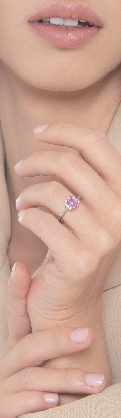 Bague en or blanc 18 carats avec saphir rose