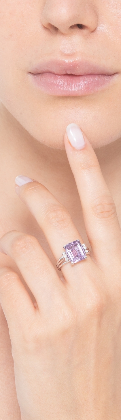 Bague en or blanc 18k avec améthyste centrale et diamants