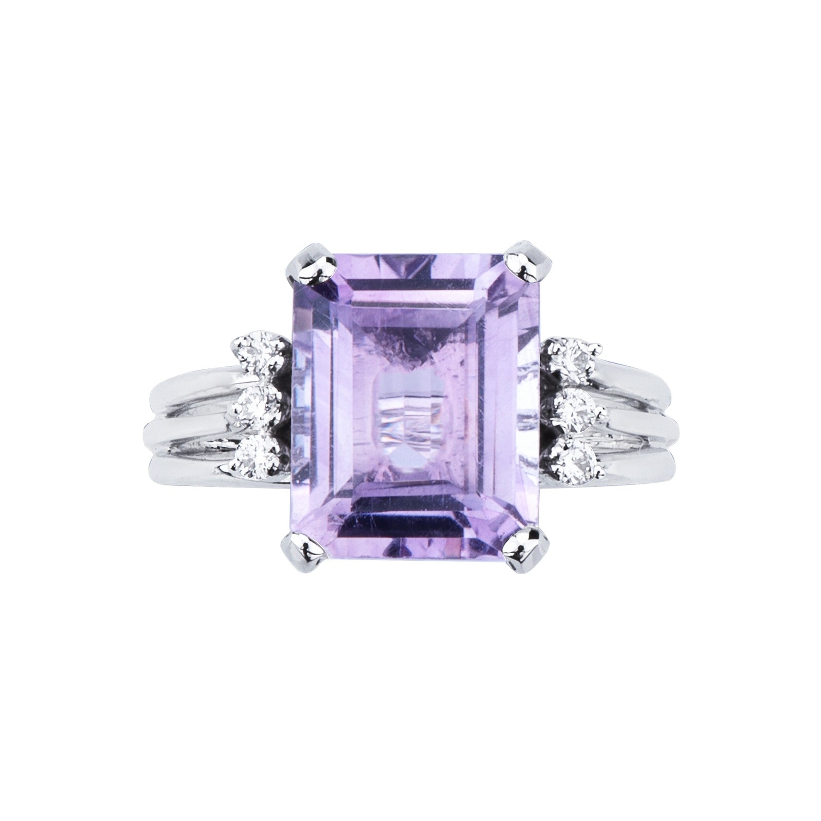 Bague en or blanc 18k avec améthyste centrale et 6 diamants