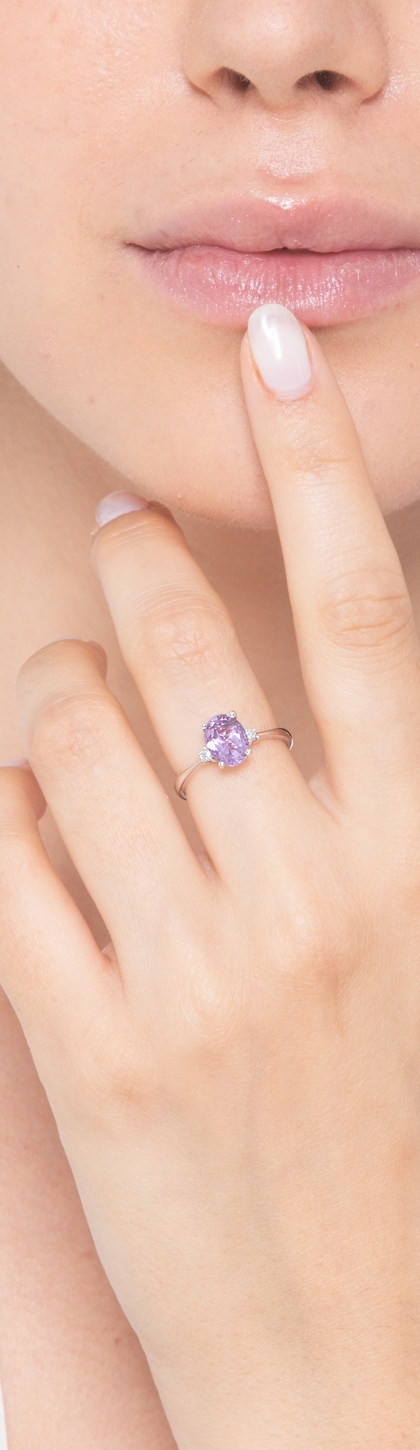 Bague en or blanc 18k avec améthyste centrale et diamants