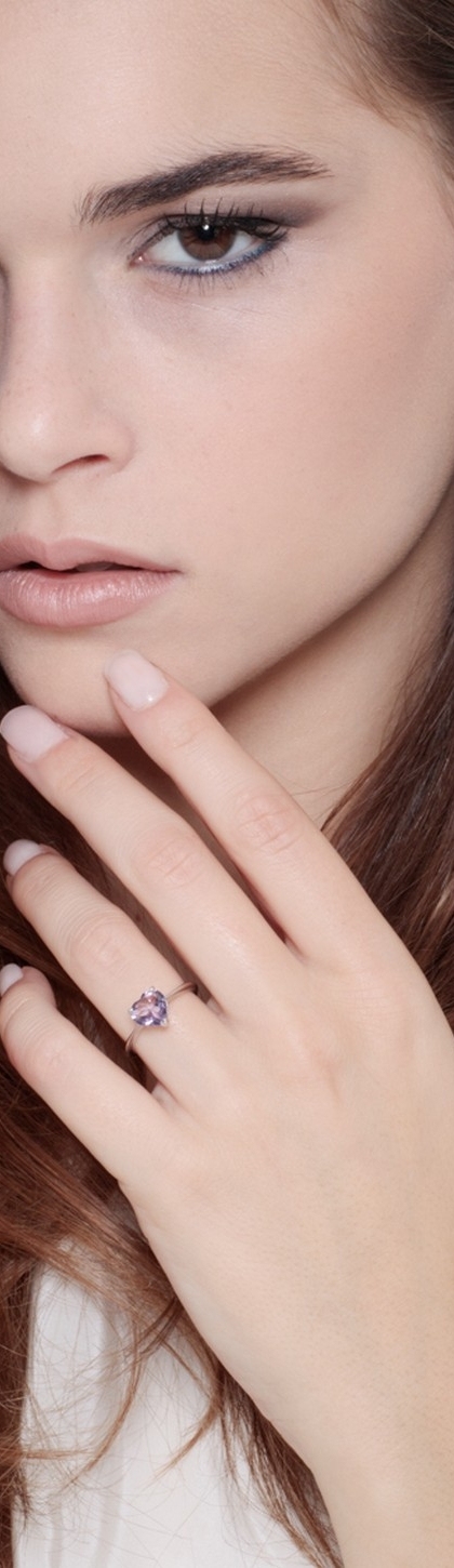 Bague en or blanc 18k avec améthyste en forme de cœur