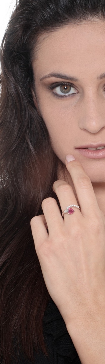 Bague en or blanc 18k avec rubis en forme de cœur et diamants