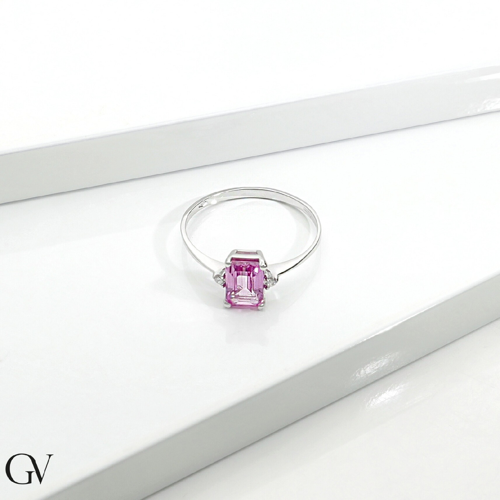 Bague or blanc 18k avec saphir ovale et pavé de diamants