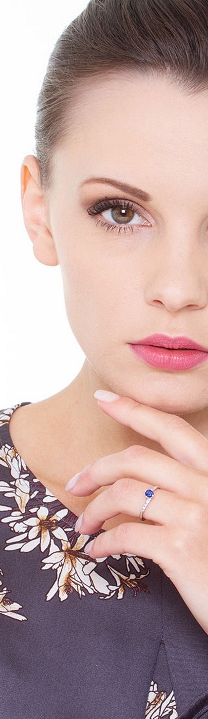 Bague en or blanc 18k avec un saphir bleu