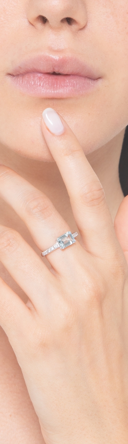 Bague en or blanc 750 avec une aigue-marine et diamant