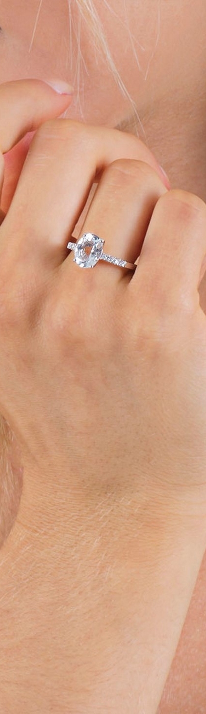 Bague en or blanc 18k avec saphir bleu ovale et diamants