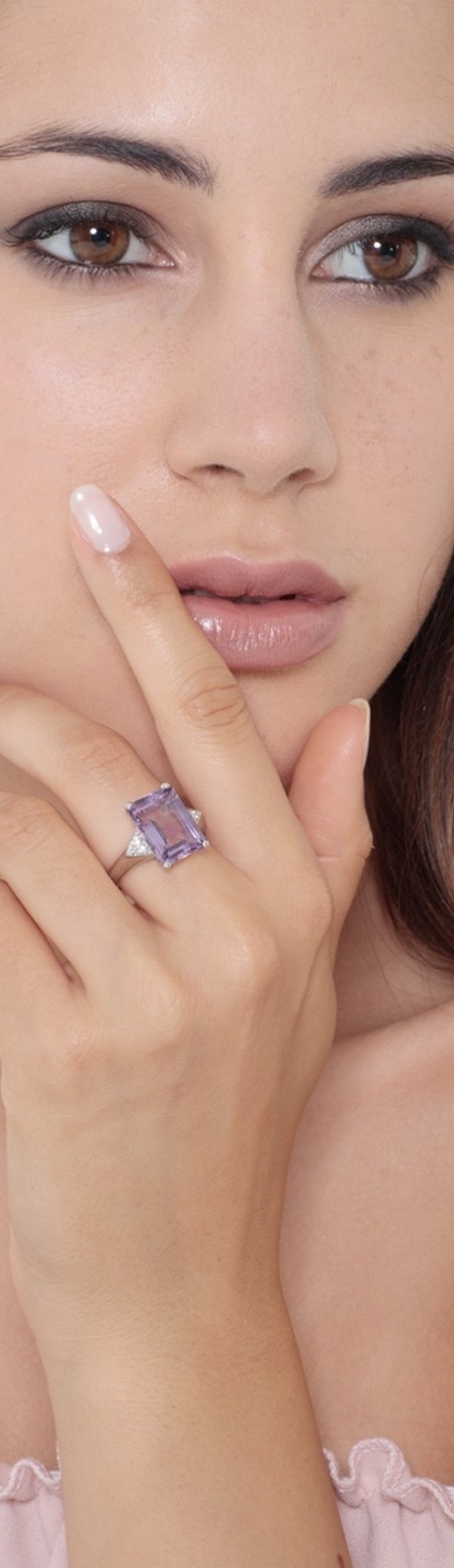 Bague femme or blanc 18K améthyste et diamants
