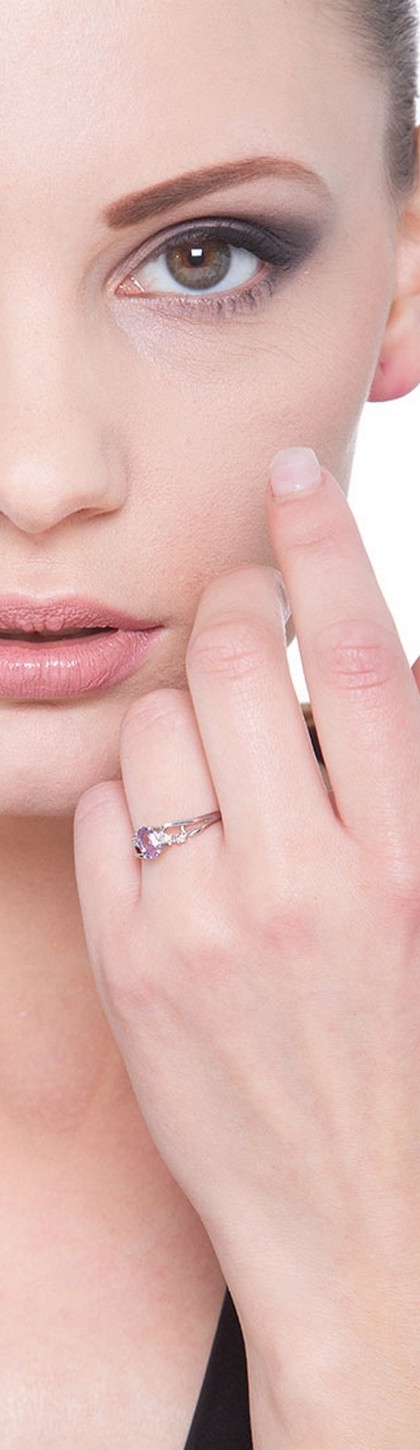 Bague fine en or blanc 18 carats avec améthyste ovale et diamants