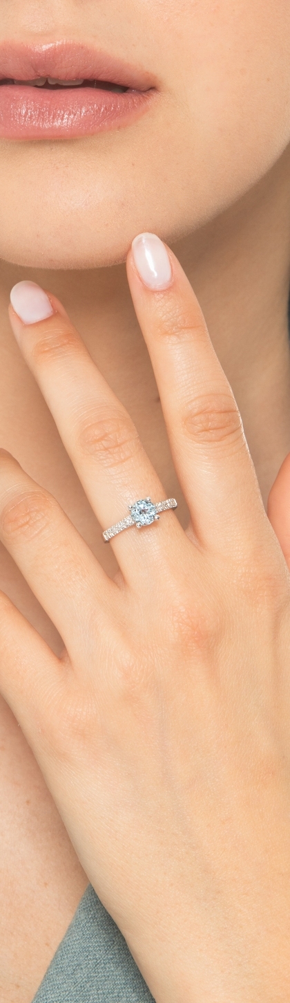 Bague jonc en or blanc 18k avec aigue-marine et diamants latéraux