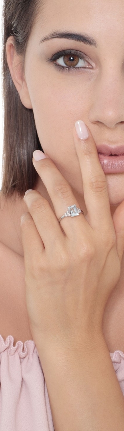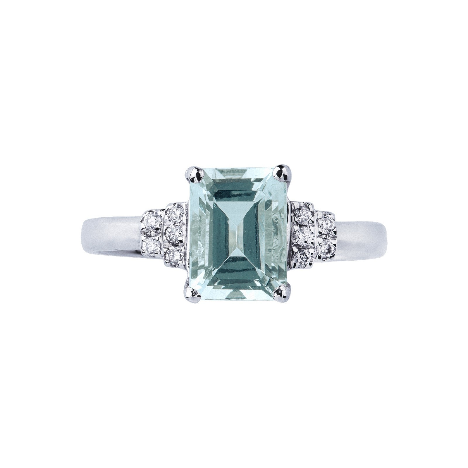Bague or blanc 18k aigue-marine octogonale et diamants