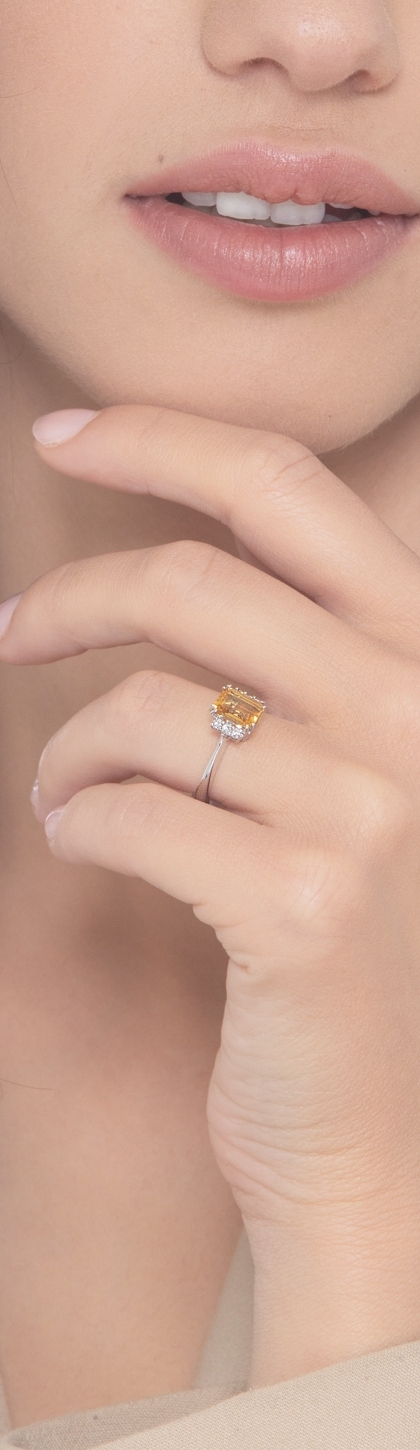 Bague Or Blanc 18k avec citrine ovale et diamants